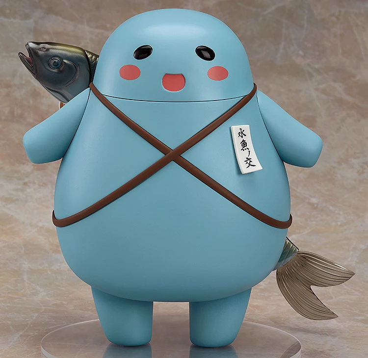 Yui and Uogokoro-kun each have their own base allowing them to displayed separately, but also comes with special parts that allow you to display Yui inside the Uogokoro-kun costume as well! The sports drink that Yui is holding in her hand can also be switched out for Nagarekawa’s famous ‘Mirin Cider’ drink for a slightly different look!
