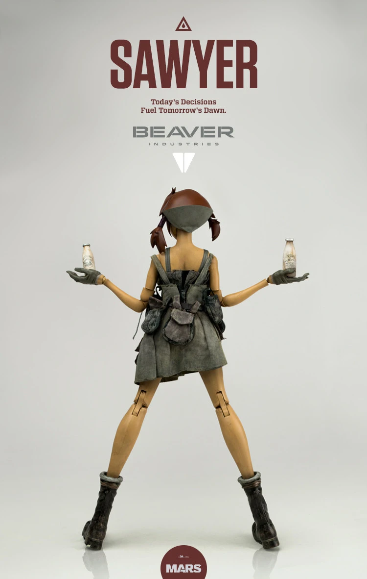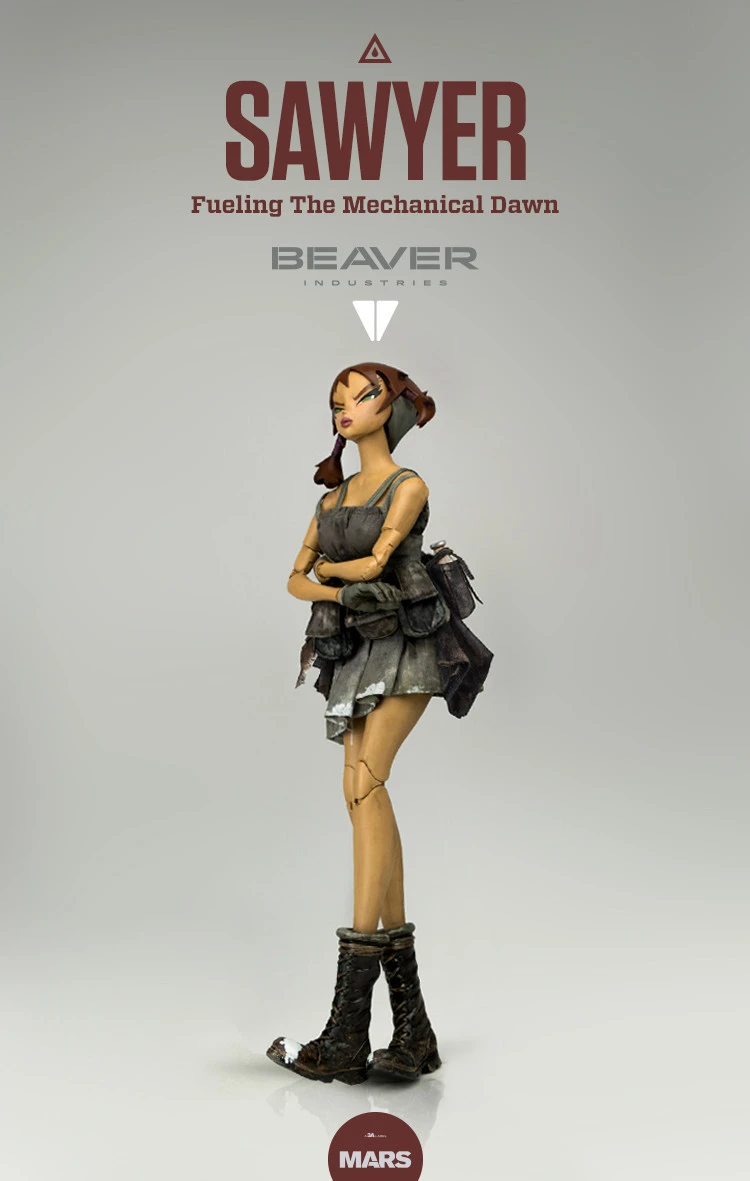 From ThreeA’s newest series which depicts a a futuristic lumberjack world, ‘BEAVER INDUSTRIES’ comes the second figure in the series – the main character, Sawyer! Sawyer works in the lumberjack industry which is filled with corruption. She also lives in a world filled with the strange. While she is a human, in this world she is known as a ‘Biocell’. Sawyer is an engineer that works in a power plant and has incredible scientific knowledge. She is very courageous and also rather fit. Her main job is maintenance and repairs of robots, as well as the milk refuelling of small robots.